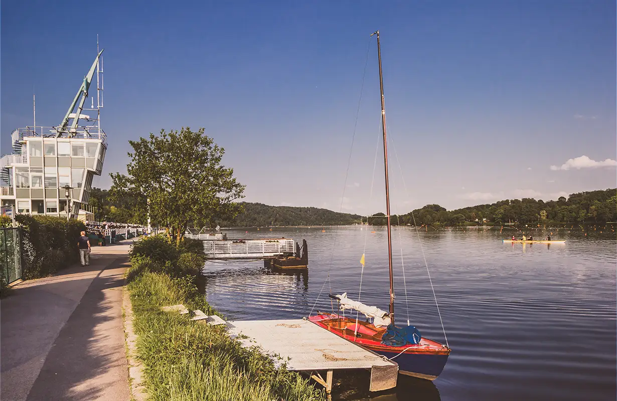 Fußläufig vom Hotel beginnt der Weg zum Baldeneysee. Spaziergänge am Wasser, Joggingrunden im Grünen oder eine Etappe auf dem Ruhrradweg – hier treffen Natur und Bewegung direkt vor der Haustür aufeinander. Ein idealer Ausgangspunkt für aktive Tage und entspannte Abende.